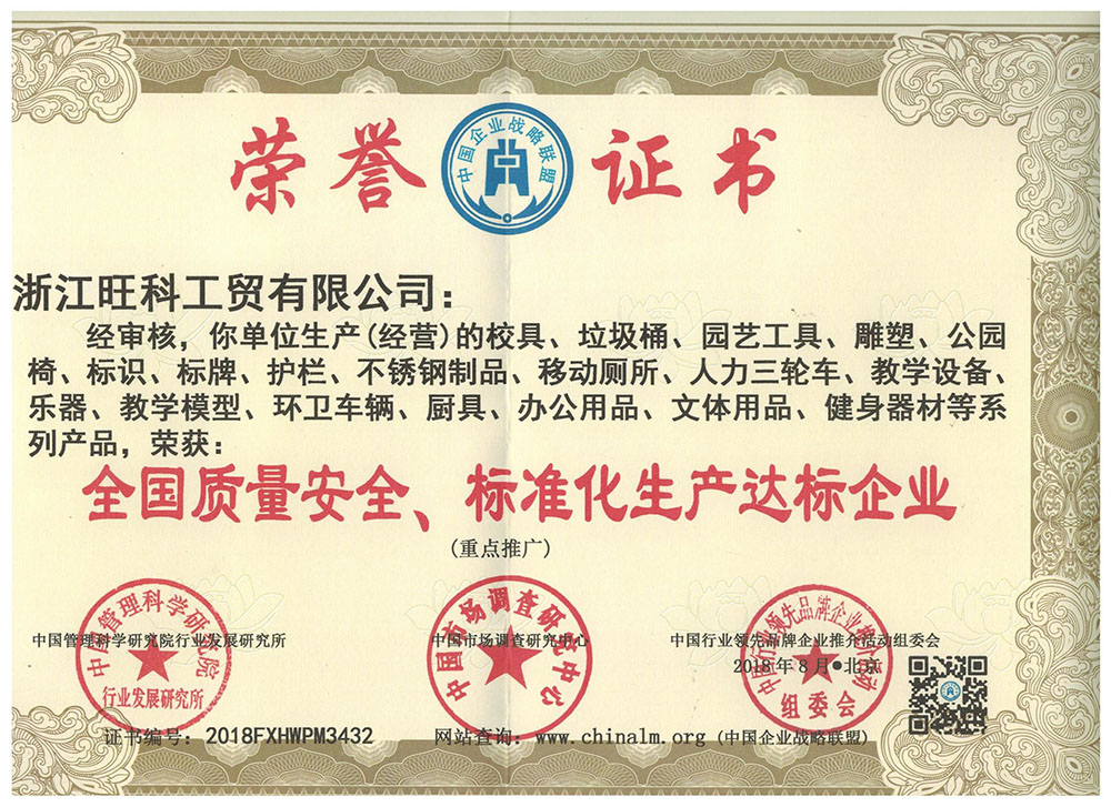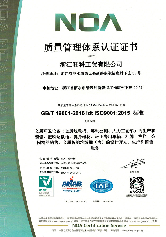 浙江旺科工貿(mào)有限公司(原國(guó)清桶業(yè))始創(chuàng)于1998年,座落于交通便利、風(fēng)光秀麗、經(jīng)濟(jì)繁榮,素有“百工之鄉(xiāng)”、“中國(guó)科技五金城”美稱(chēng)的江南古城---永康。是一家集研發(fā)、生產(chǎn)、銷(xiāo)售與服務(wù)為一體的現(xiàn)代化企業(yè),現(xiàn)公司占地面積16000多平方米,廠(chǎng)房建筑面積20000余平方米。國(guó)清桶業(yè)專(zhuān)業(yè)生產(chǎn)環(huán)保設(shè)備、垃圾桶、垃圾車(chē)、宣傳窗、沖孔垃圾桶、清潔設(shè)備、公共休閑椅、崗?fù)、生態(tài)廁所、體育健身器材、雕塑、書(shū)寫(xiě)白板、綠板、黑板、校具、園林工具、塑料制品、五金制品等。