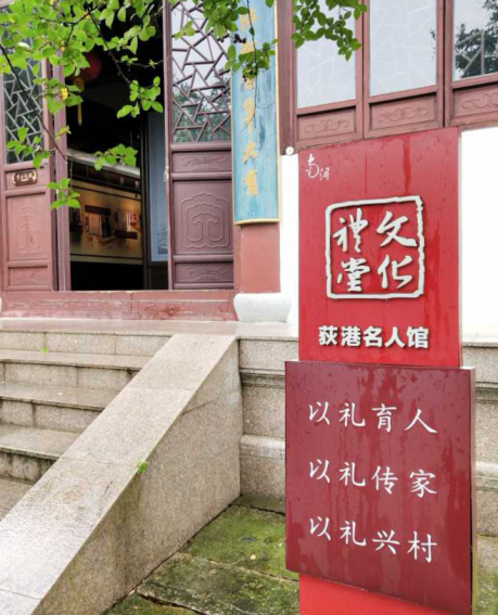 “荻港‘耕讀文化’淵遠流長,三大望族章、朱、吳,秉承‘耕讀傳家,崇文尚禮’、‘知書達理,誠信待人’、‘崇儒重文,積善行德’”之家訓家風。”這是刻在荻港歷史名人館門前的一段話。荻港歷史名人館,建成于2011年,由浙江省文物局文保員章明夫老先生花了三年調(diào)查并整理荻港的歷史名人,集中展示了包括狀元、進士、軍事、外交、實業(yè)、名醫(yī)、名教、藝術、名僧在內(nèi)的七十多位文化名人的偉大故事和卓越成就。樓外廣場上立有孔子石像,據(jù)說每年荻港的中小學都會組織學生前來祭拜孔師。我們來時正是雨天,孔子石像在雨中也顯得端莊肅穆,石像前的香爐里積滿了香灰,可見平日祭拜的盛況。同學們意識到,荻港正是有著厚重的文化積淀和傳承,才能孕育出如此犖犖英才,正所謂“以禮育人,以禮傳家,以禮興村”,其文化禮堂的建設腳步未曾停歇。